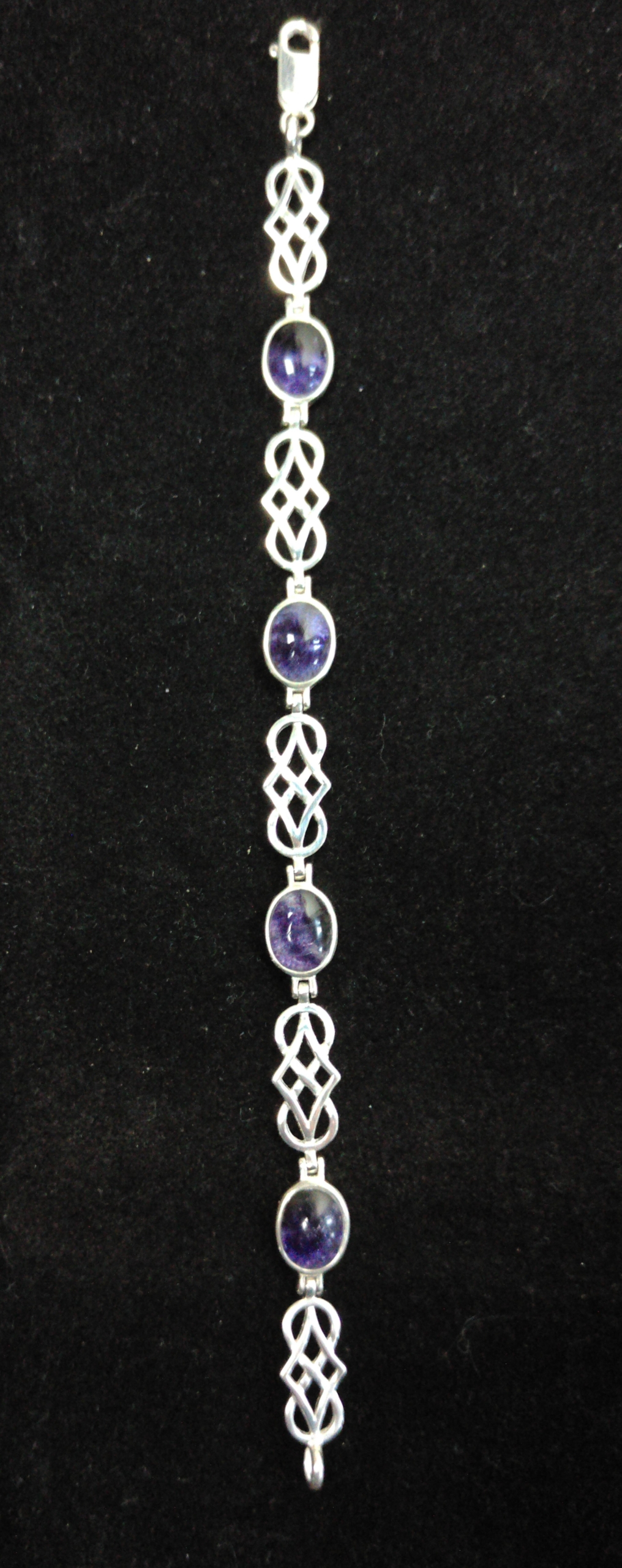 Sterling Silver and Blue John 4 stone bracelet with Celtic design.