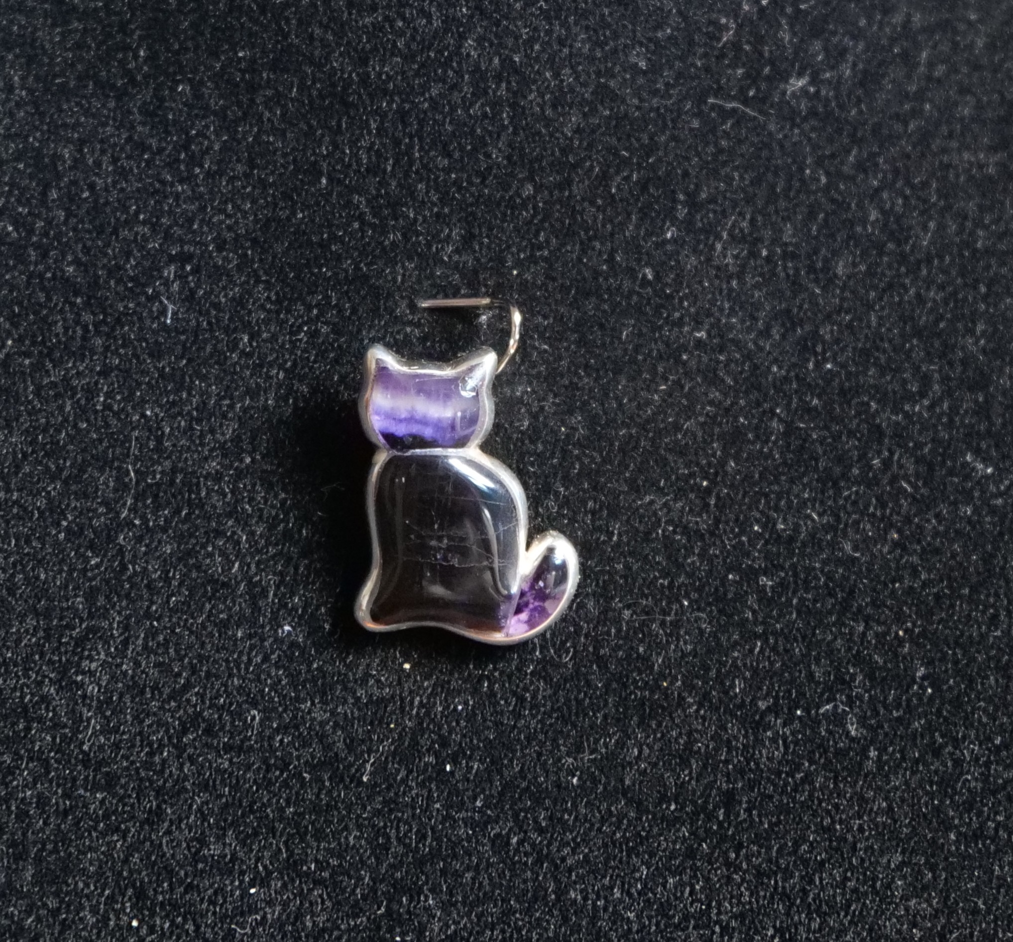 Sterling Silver and Blue John Cat pendant, Solid backed