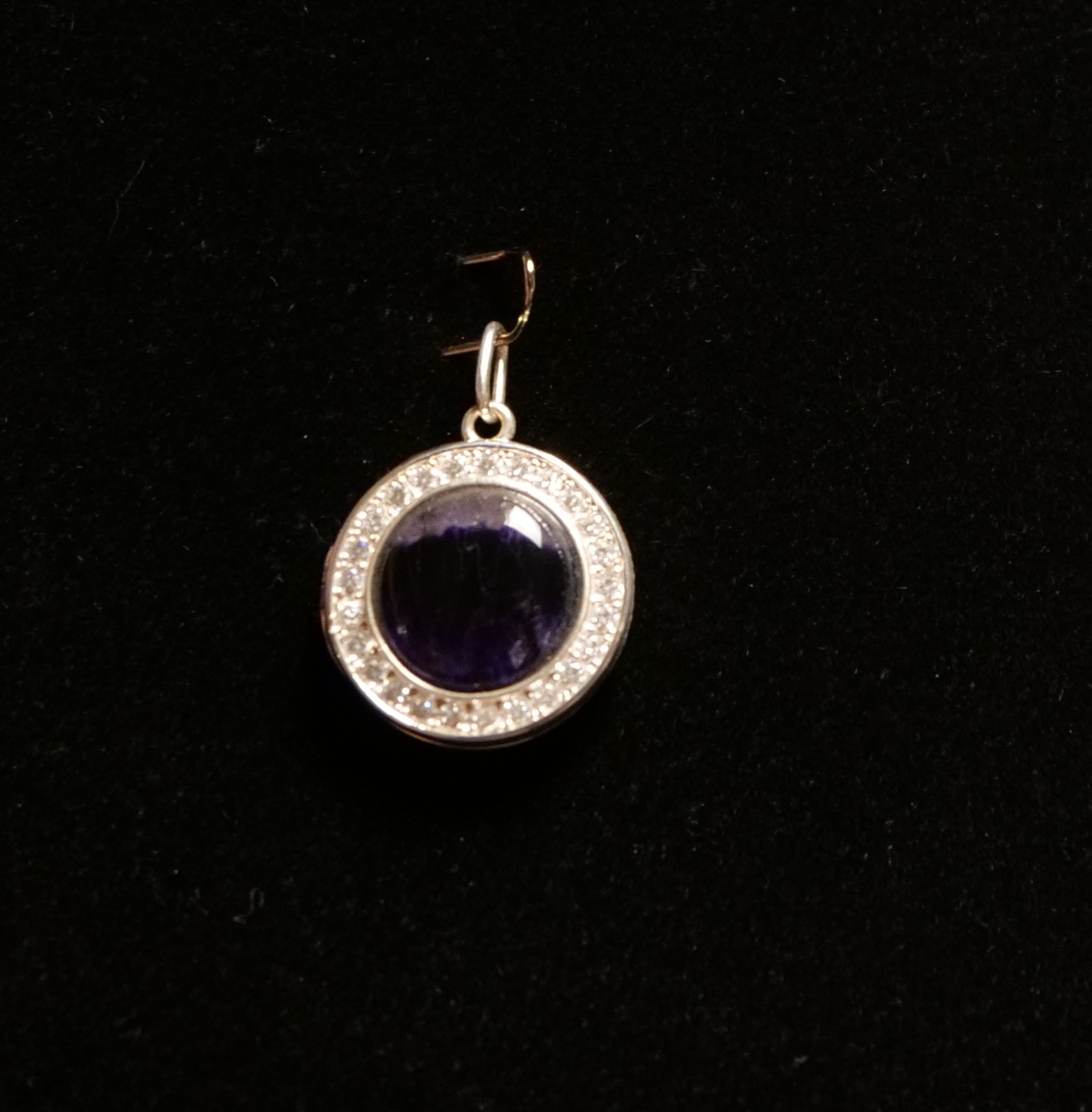 Sterling Silver Round Locket with Blue John Stone and Cubic Zirconia