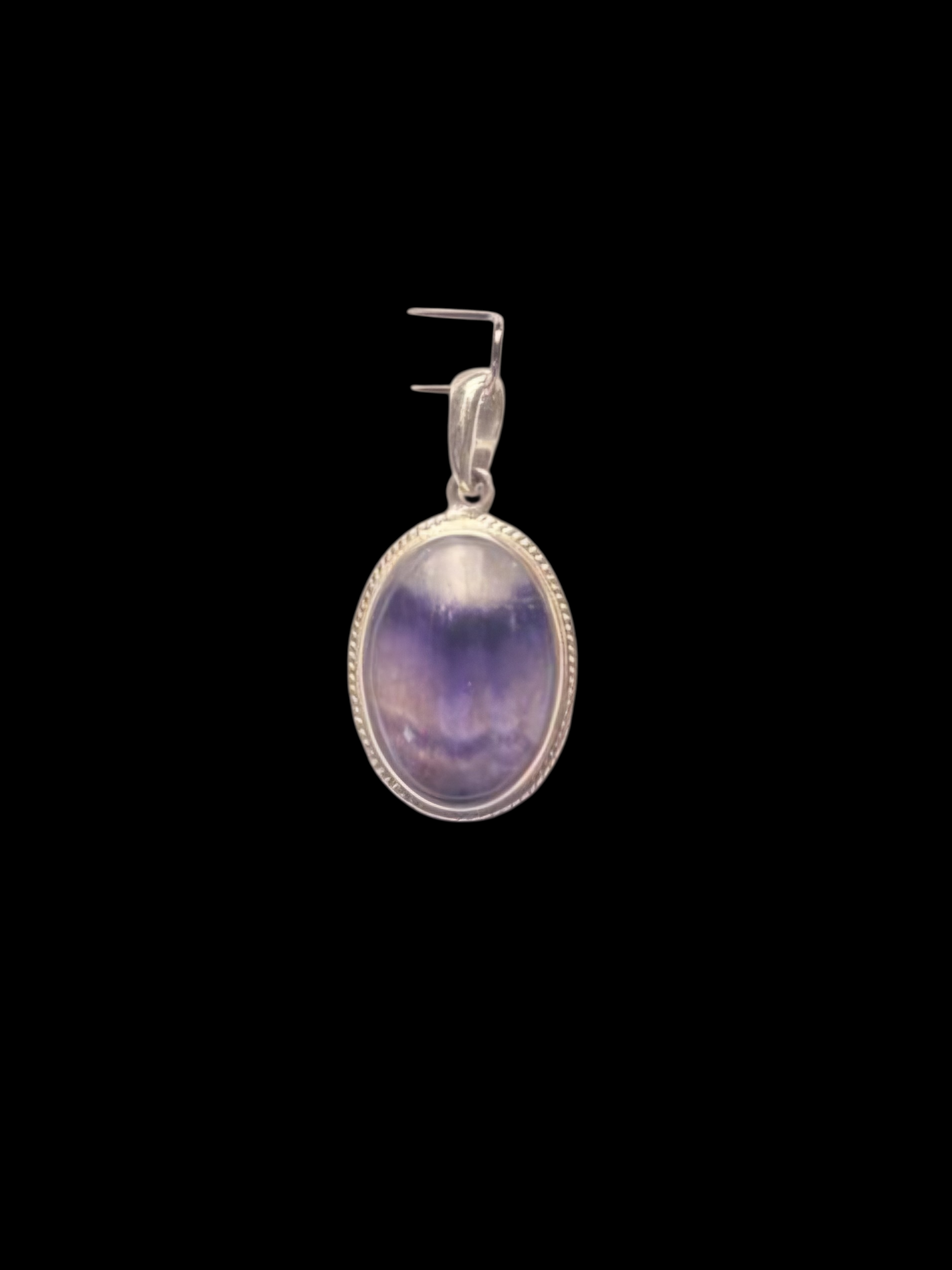 Blue John and Sterling Silver oval pendant with rope edge design, open backed.