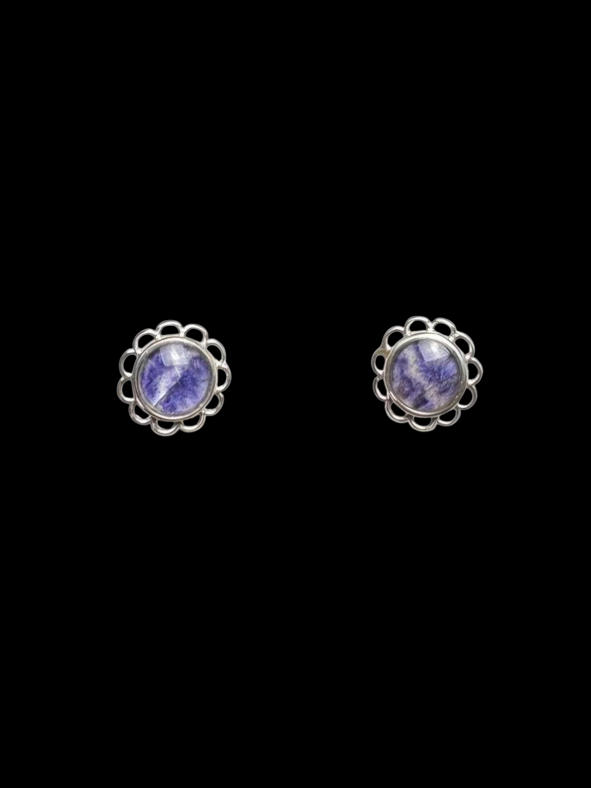 Blue John and Sterling Silver round stud earrings with loop edge design