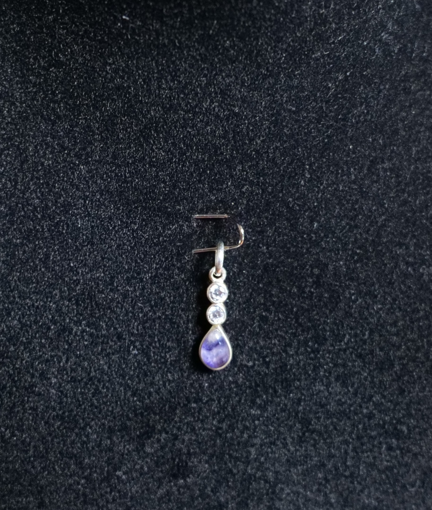 Small teardrop Sterling Silver pendant with Cubic Zirconia and Blue John Stone, solid backed