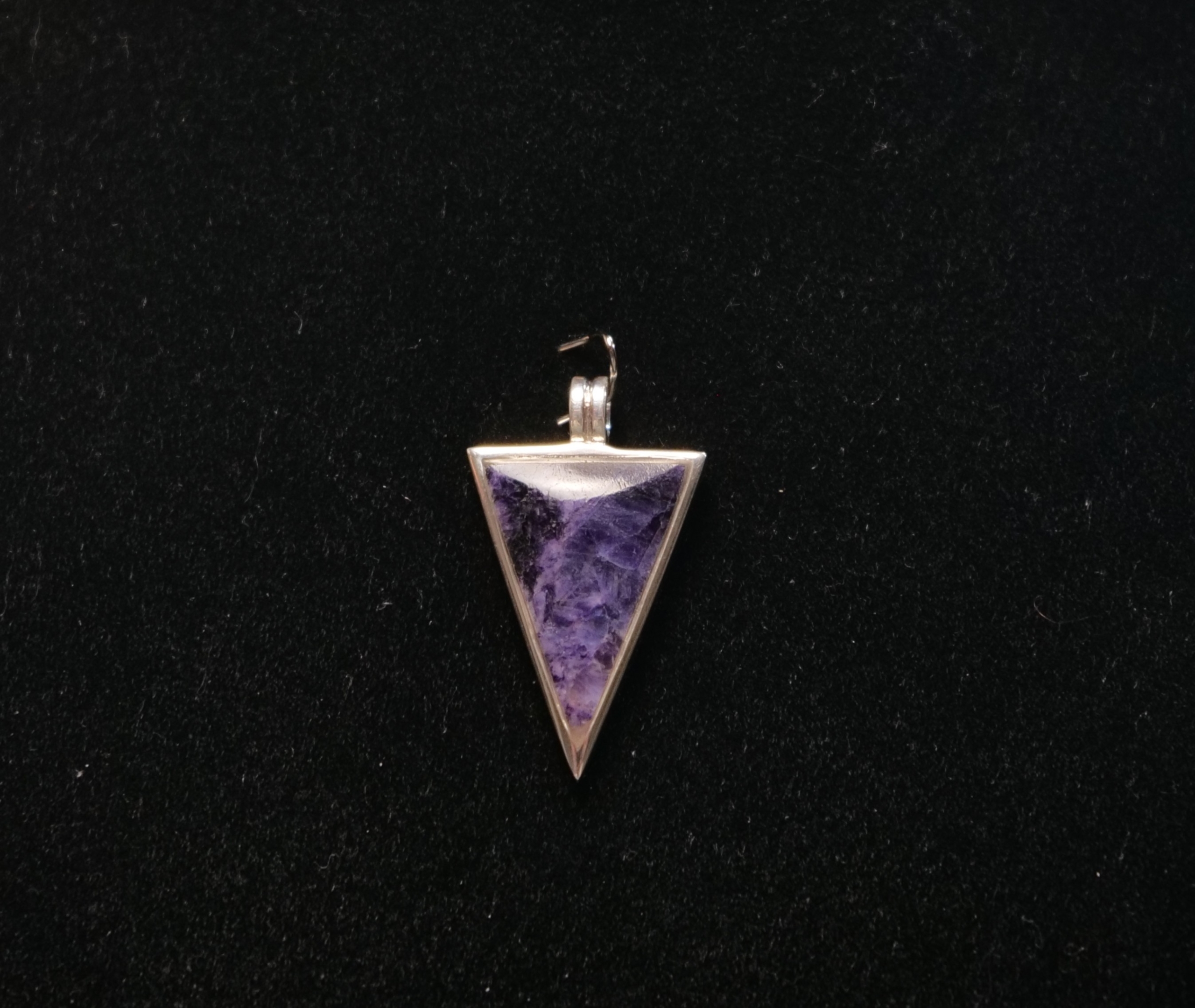 Medium Sterling Silver triangle shaped pendant with Blue John Stone, solid backed