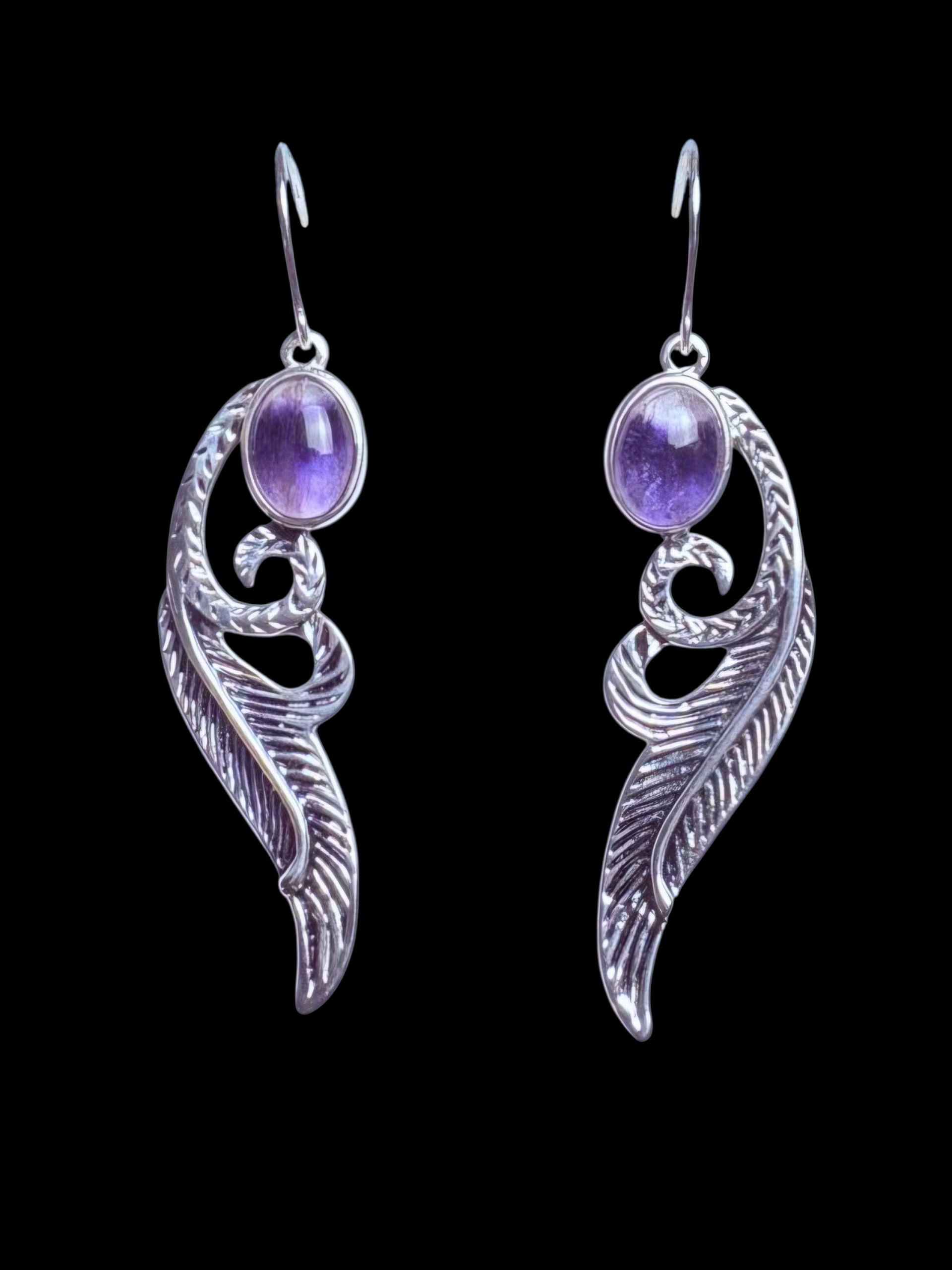 Blue John Feather design drop Earrings set in sterling silver