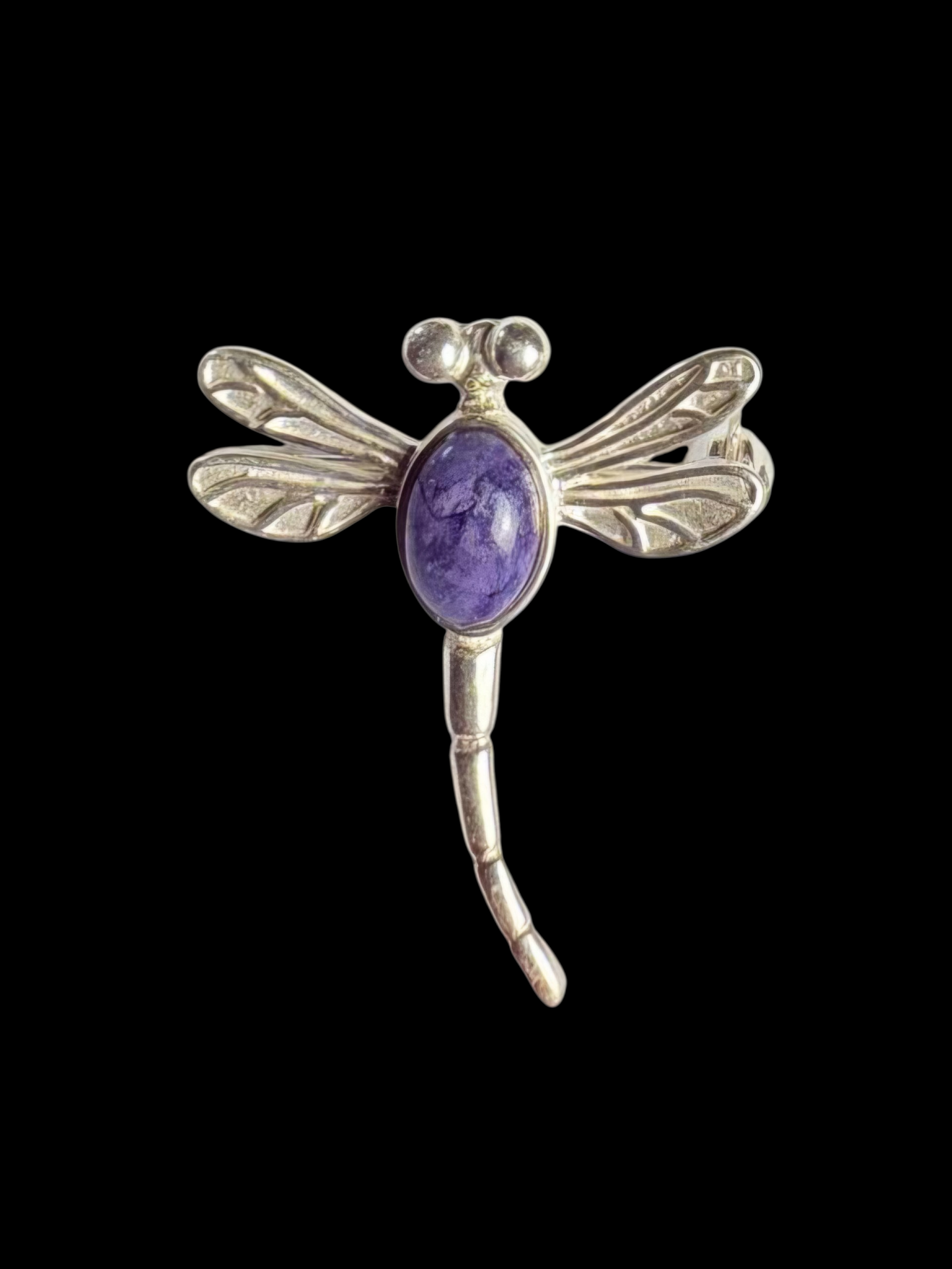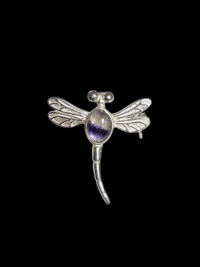 Sterling Silver Dragonfly Brooch with Blue John Stone