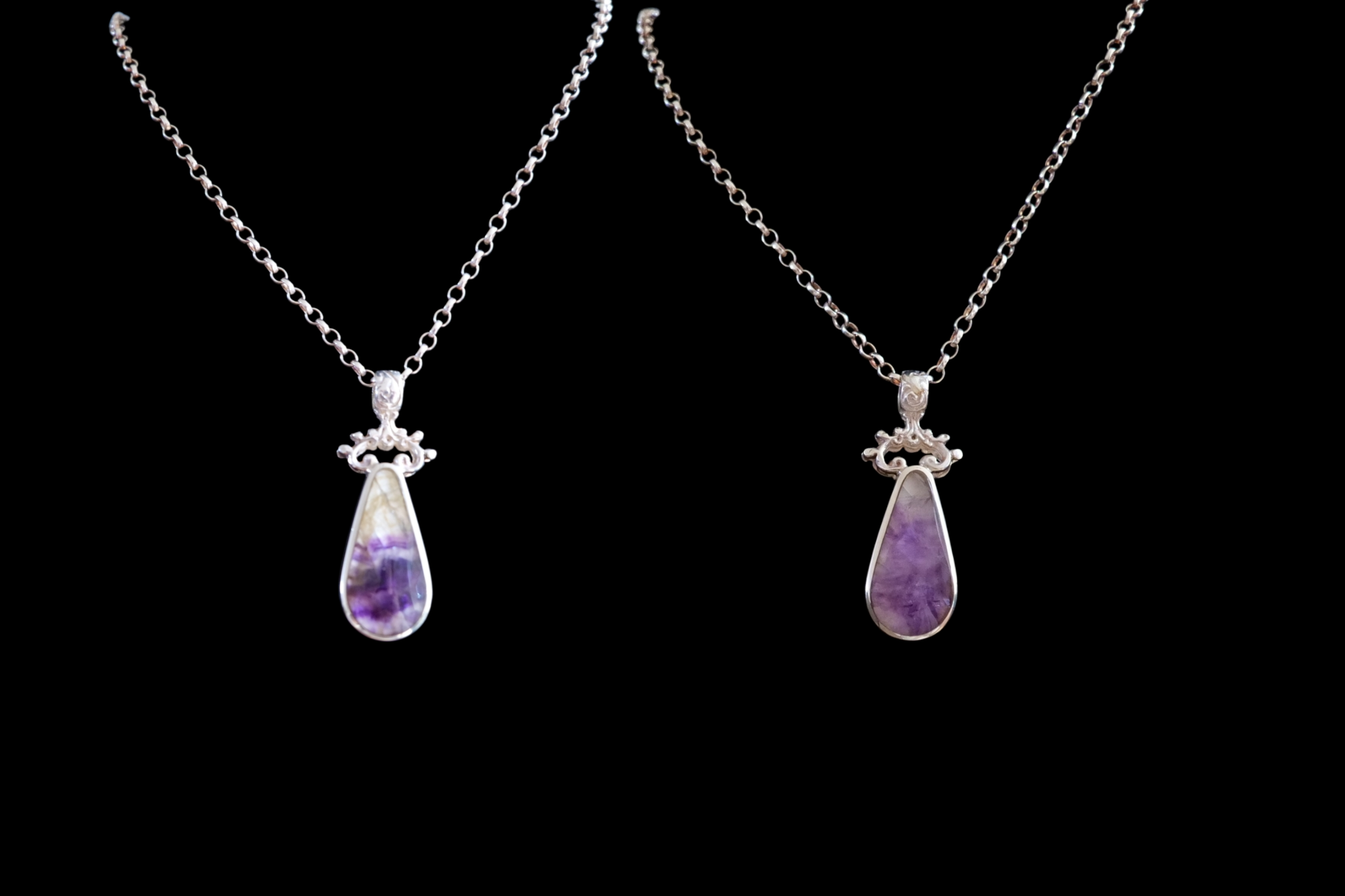 Handmade medium sized chunky double sided Sterling Silver and Blue John Pendant with Solid Ornate Top