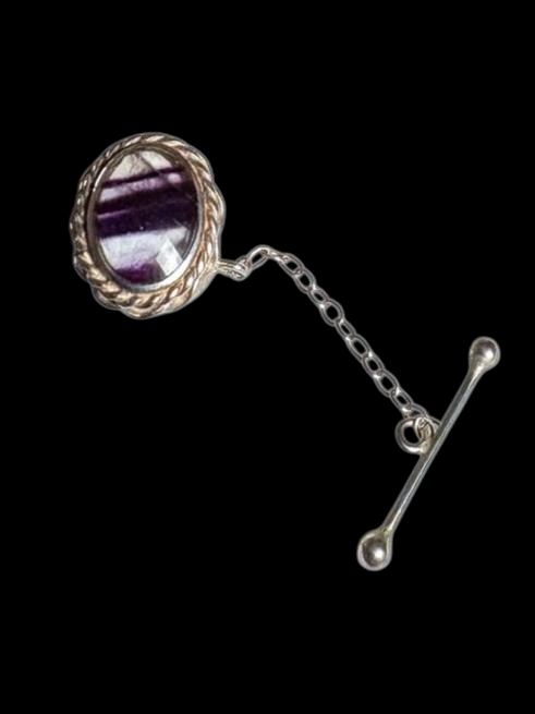 Stunning handmade Sterling Silver Tie Tack finished with Blue John Stone, includes safety chain.