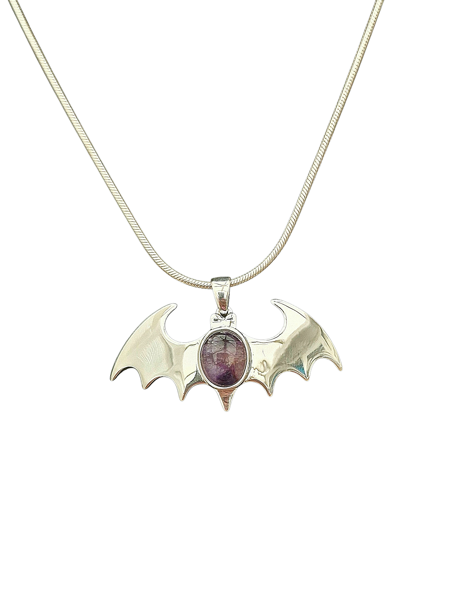 Large Sterling Silver Bat Pendant set with Blue John Stone.