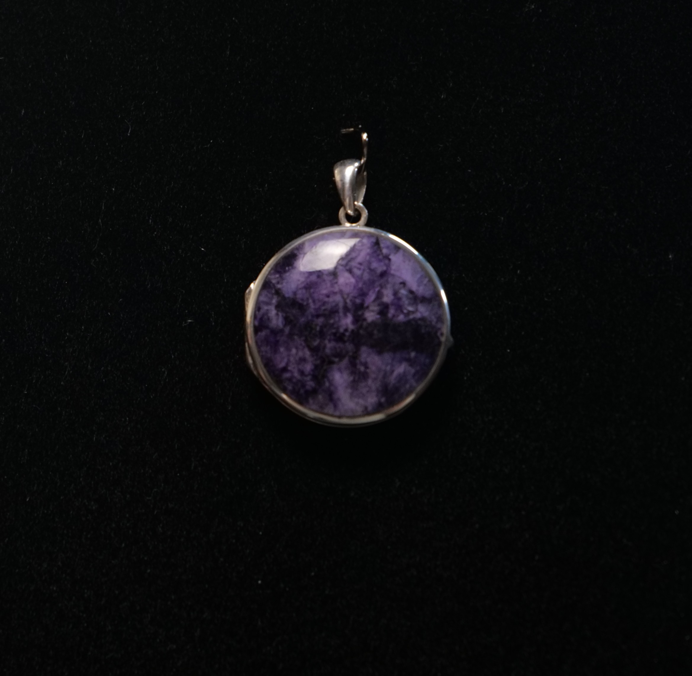 Large round Sterling Silver Locket with Blue John Stone