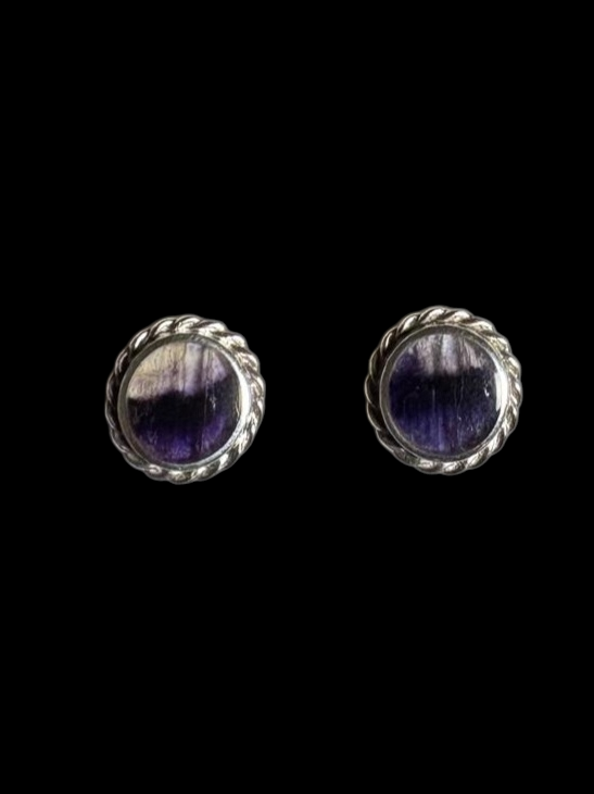 Large Round Stud with Rope Edge Design set in sterling silver