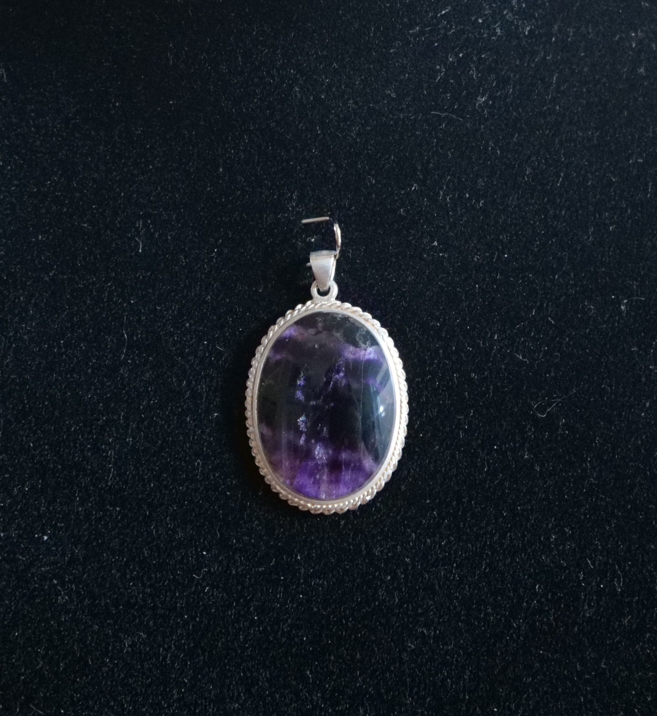 Medium Oval Blue John Pendant Set in sterling silver with double rope edge design