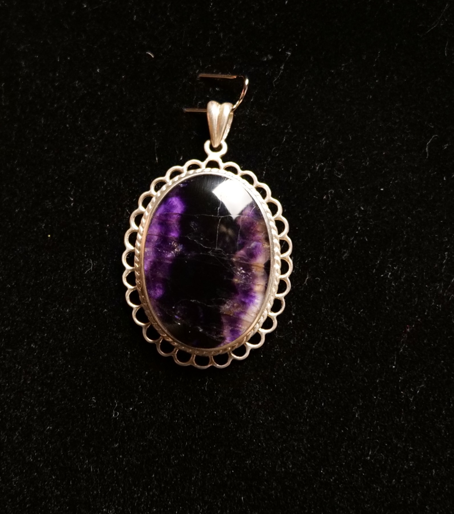 Medium Sterling Silver and Blue John Pendant with rope and loop edge, open backed