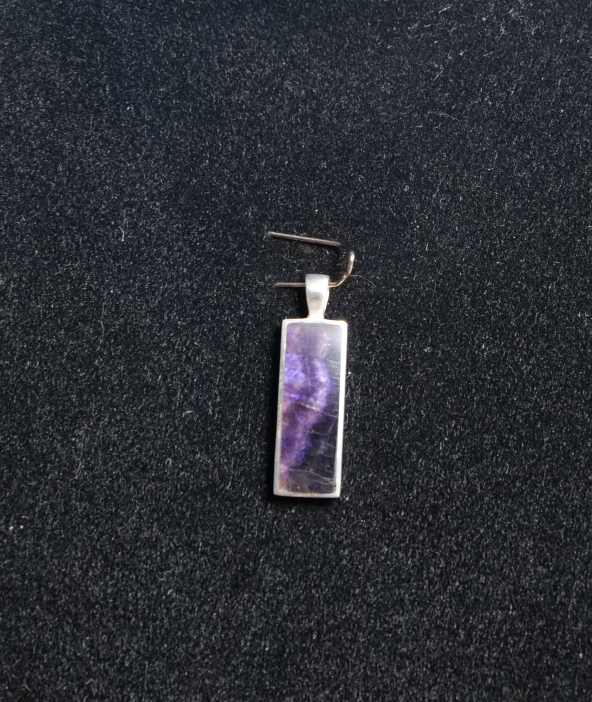 Medium Sterling Silver and Blue John rectangular pendant with solid bail, solid backed