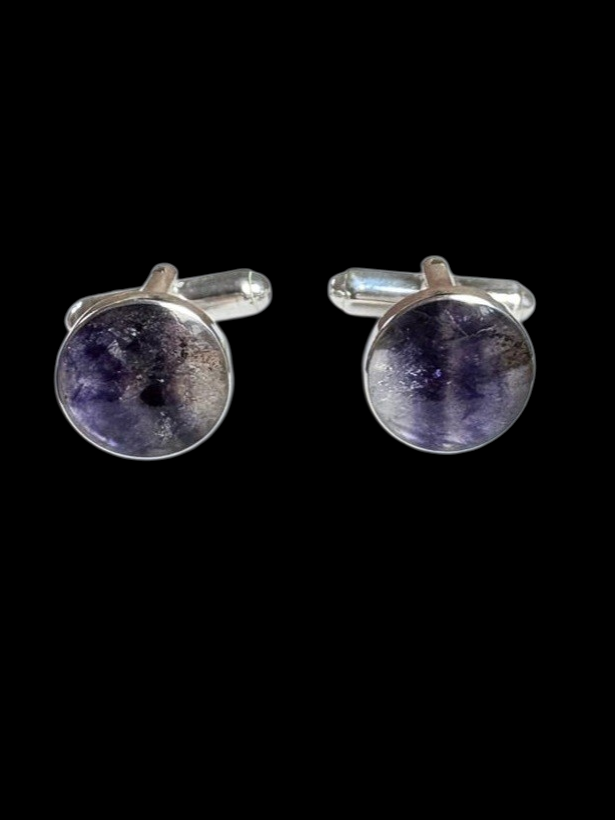 Round Blue John Cufflinks set in Sterling Silver