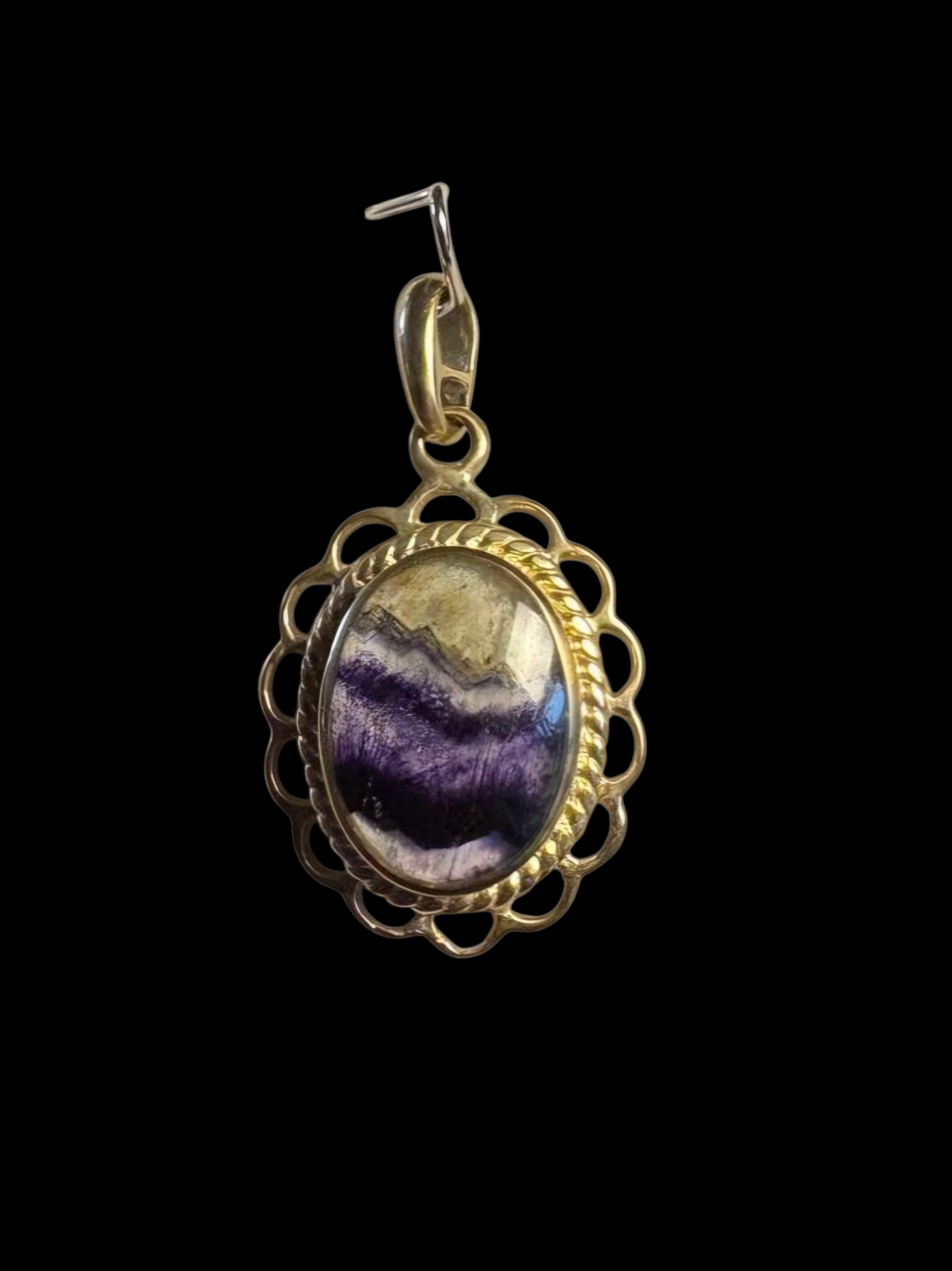 Small 9ct Gold Blue John Pendant Rope & Loop edge set in 9ct Gold
