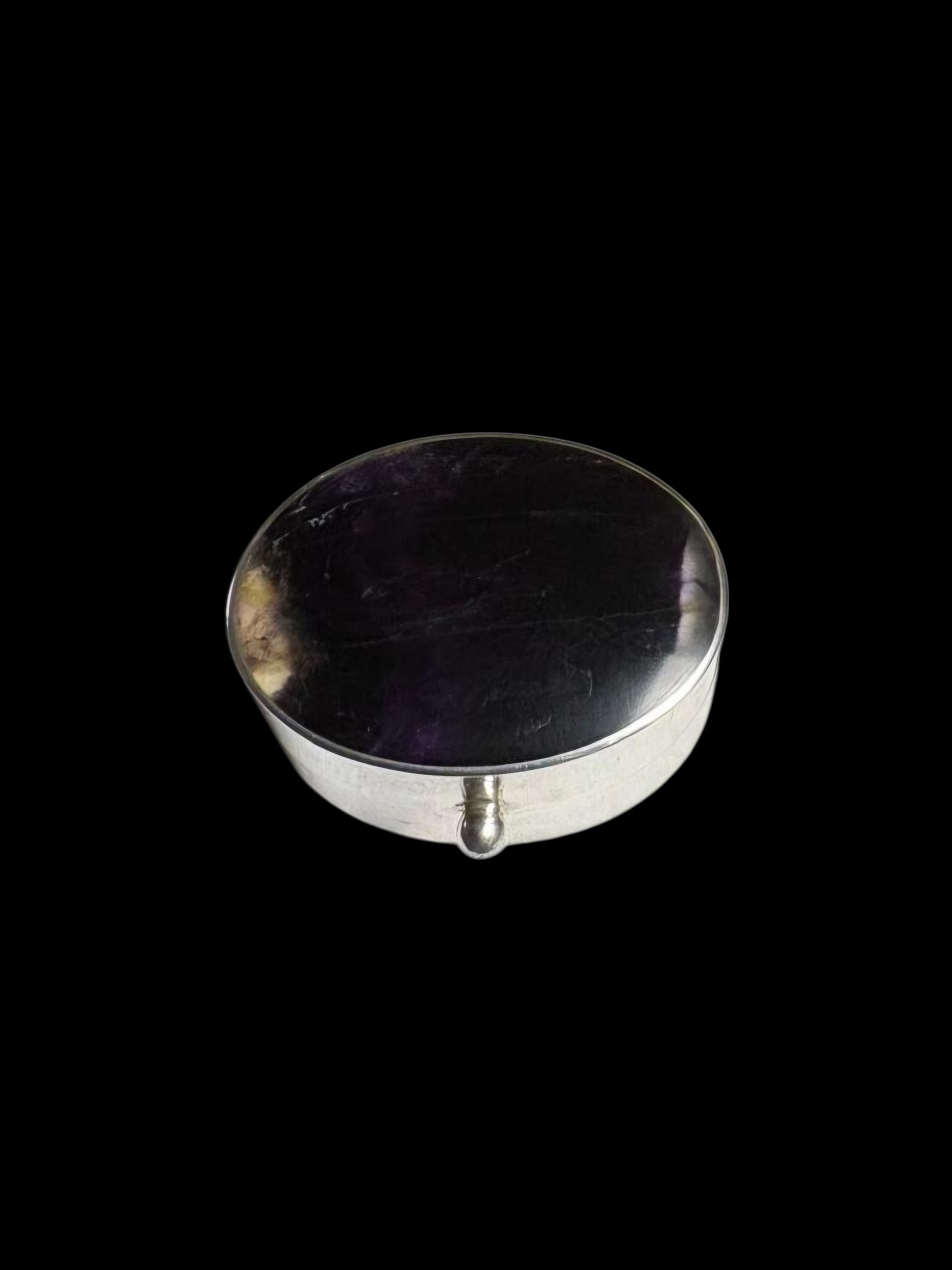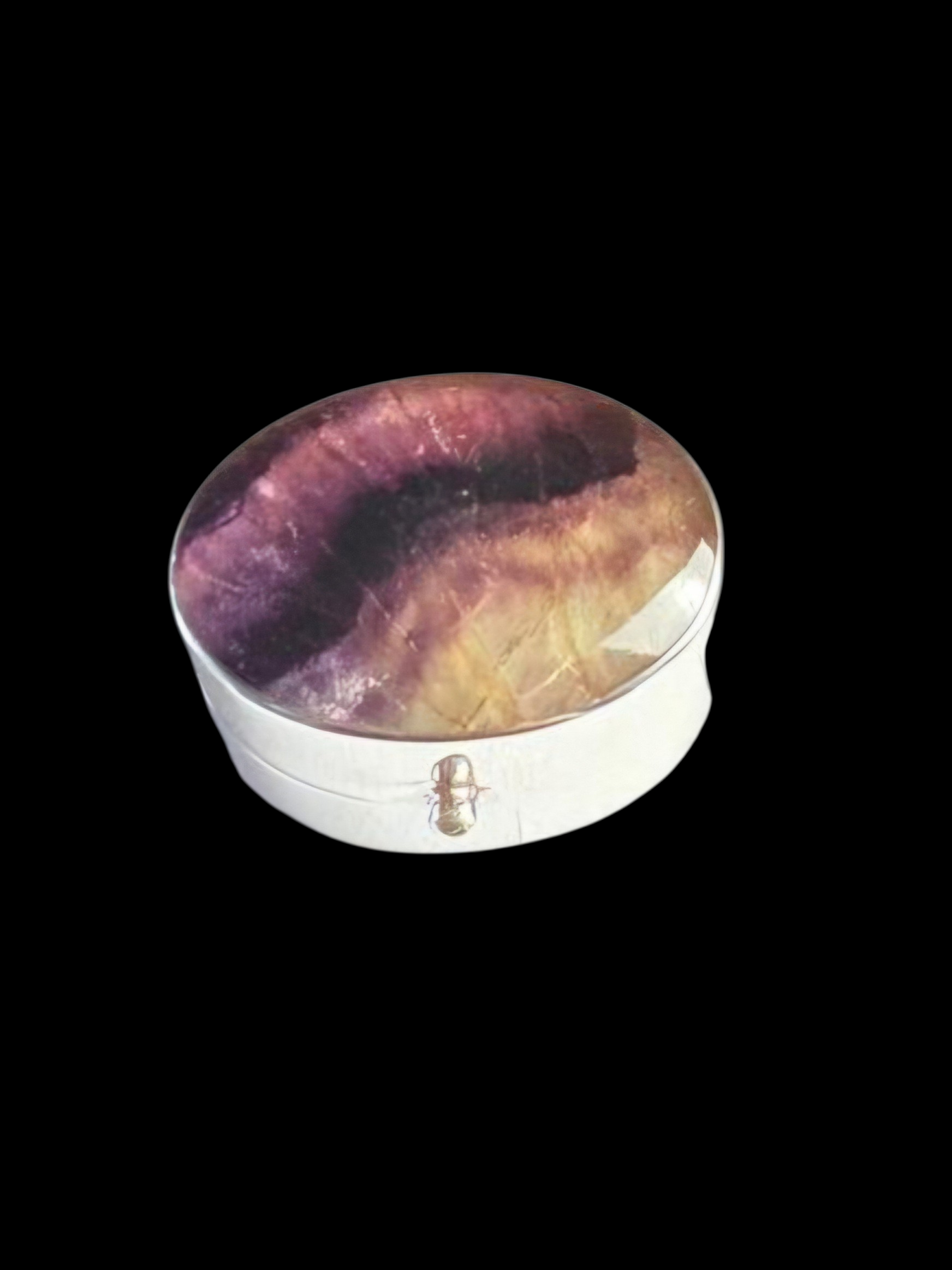 Sterling Silver oval pill box with Blue John Stone inlaid into the lid
