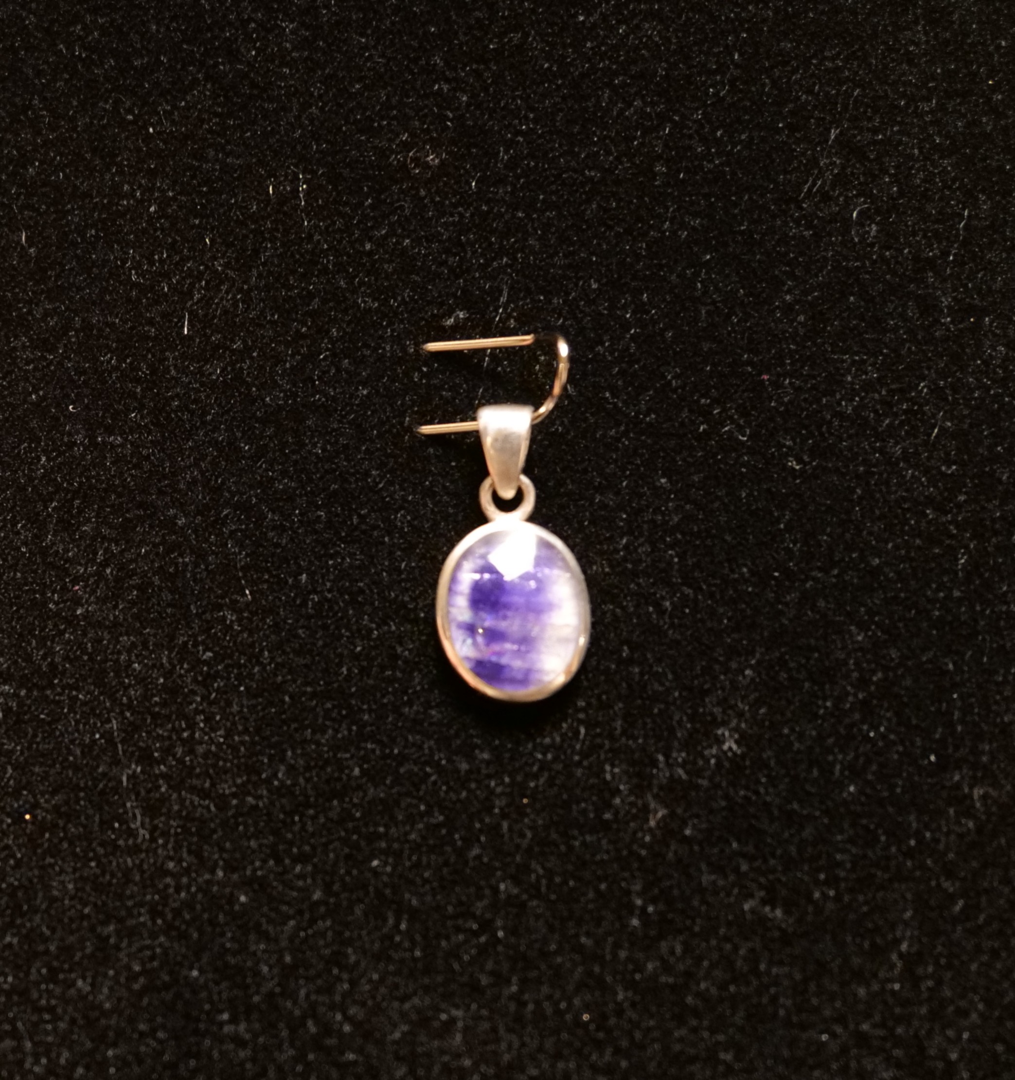 Small Sterling Silver and Blue John Plain oval pendant, open backed