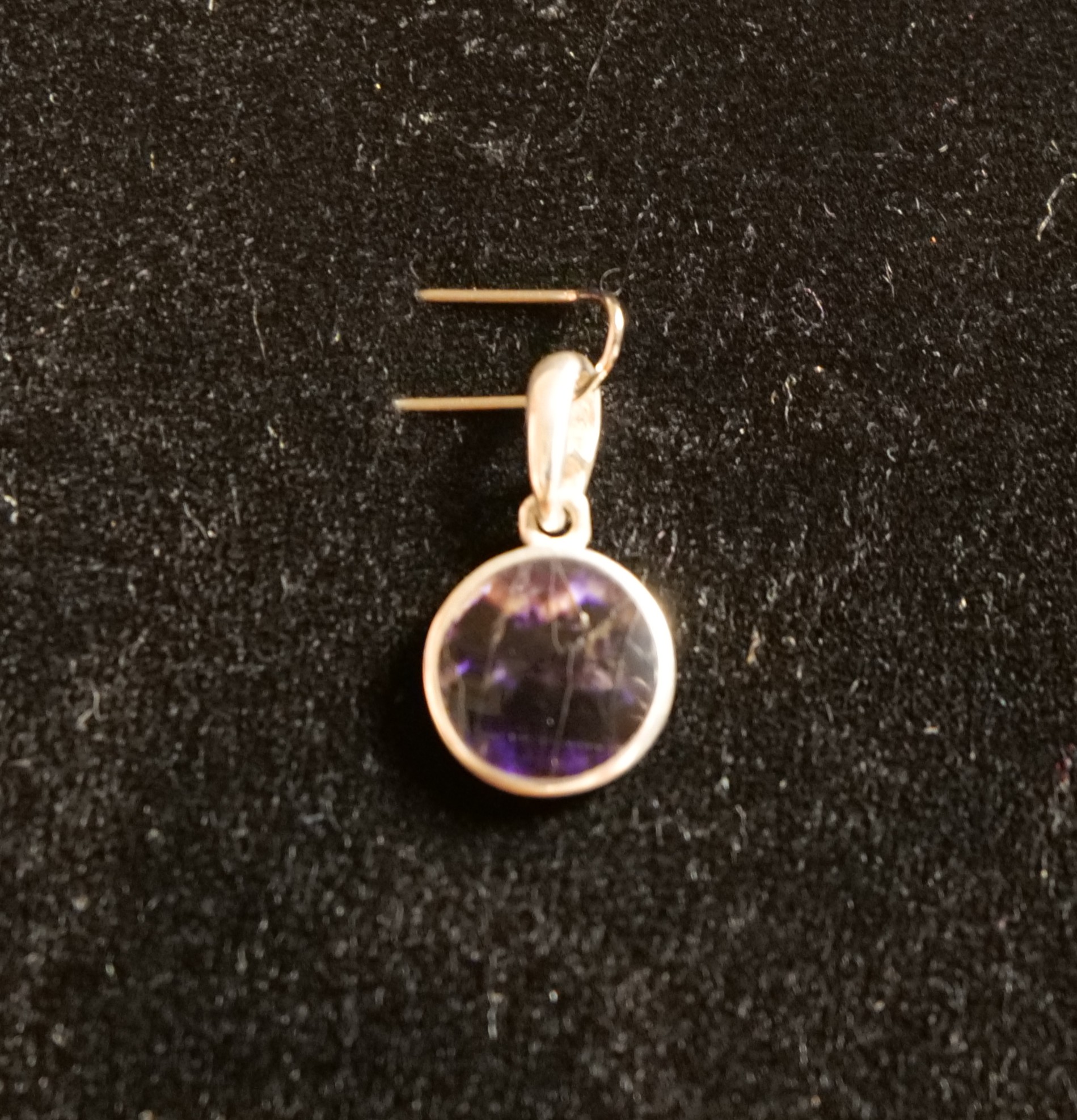 Sterling Silver plain round pendant with Blue John stone, solid backed