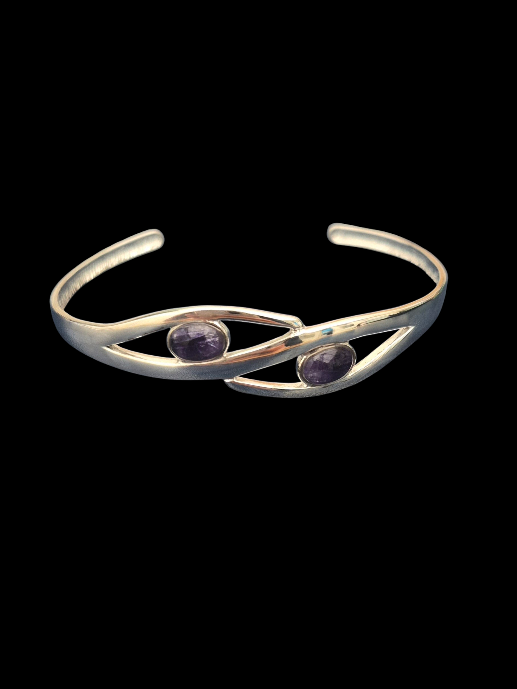 Sterling Silver bangle with 2 oval Blue John Stones.