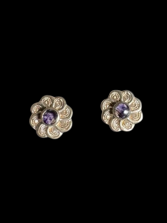 Sterling Silver and Blue John Filligree Design Stud Earrings