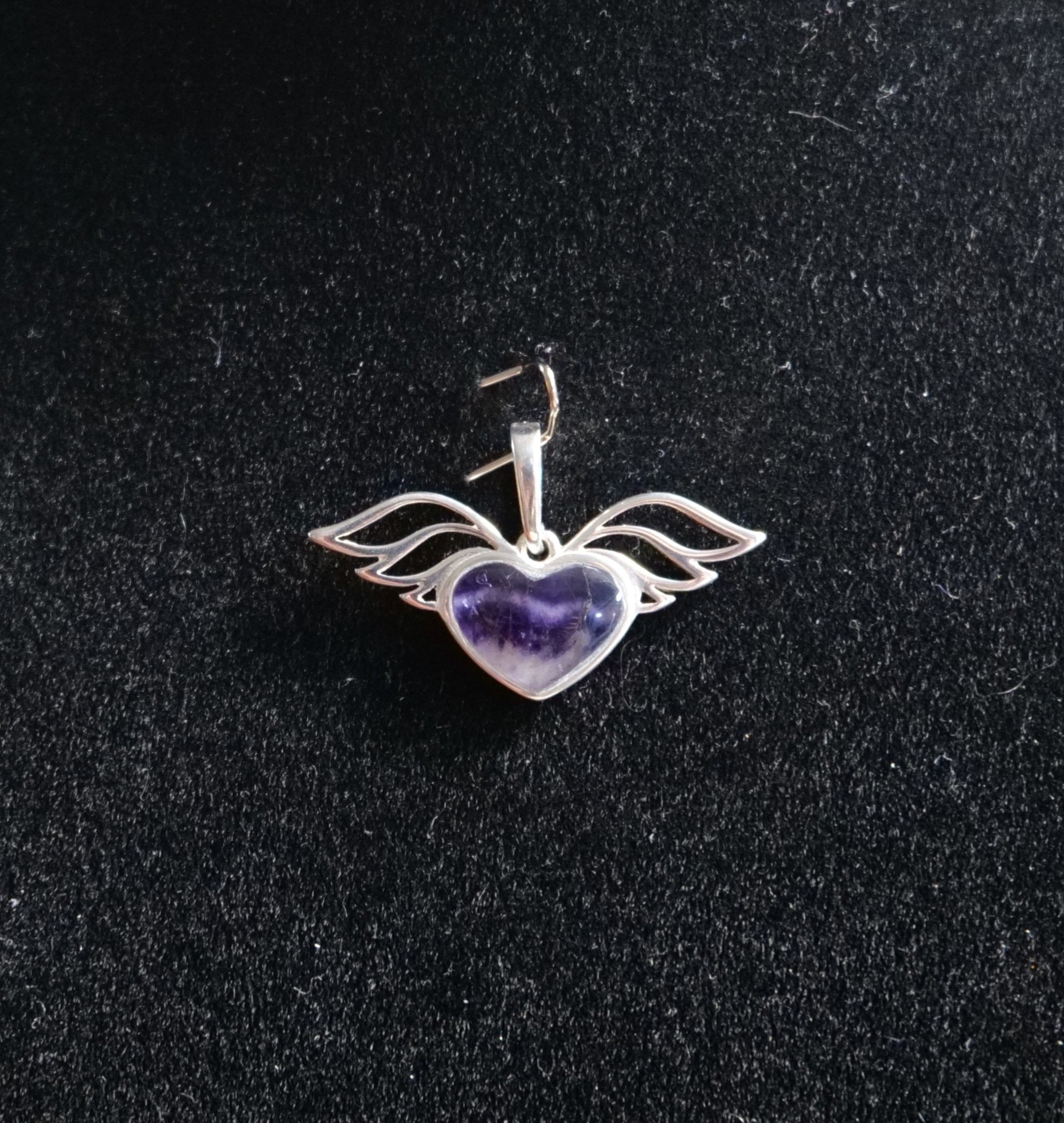 Sterling silver and Blue John heart shaped pendant with Angel Wings