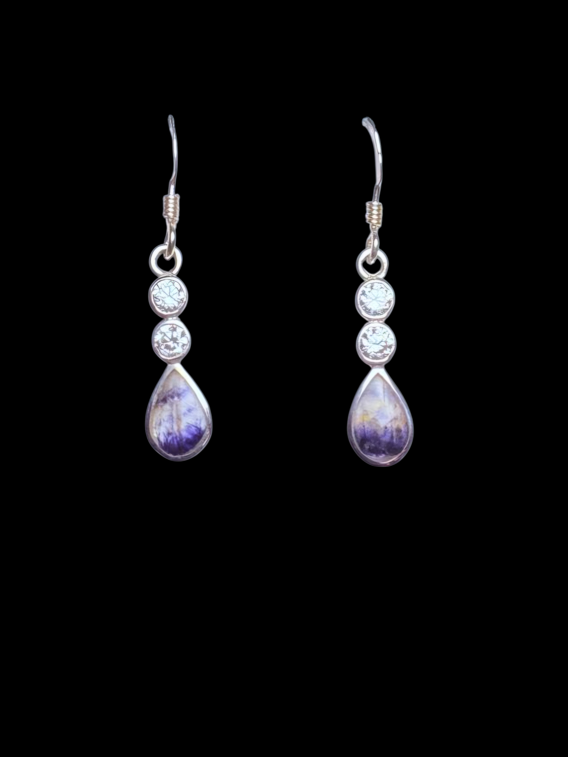 Sterling Silver and Blue John Drop Earrings with Cubic Zirconia